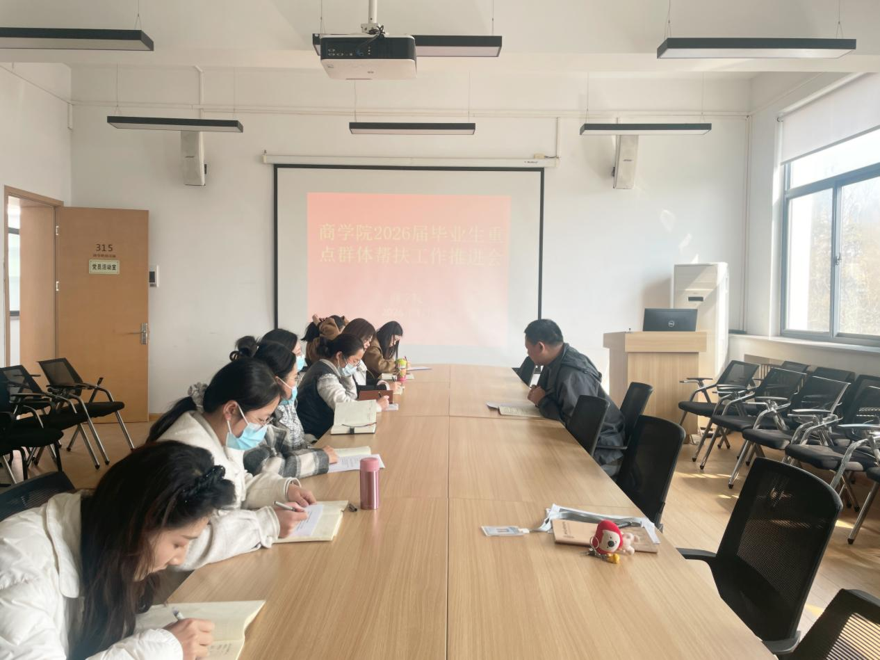 为全力破解毕业生就业工作难点,筑牢重点群体就业帮扶防线,扎实推进2026届毕业生就业工作走深走实,3月20日,商学院召开2026届毕业生重点群体帮扶工作推进会。党委书记郭峰及全体毕业班辅导员参会,聚焦重点帮扶人群现状、细化后续帮扶举措。