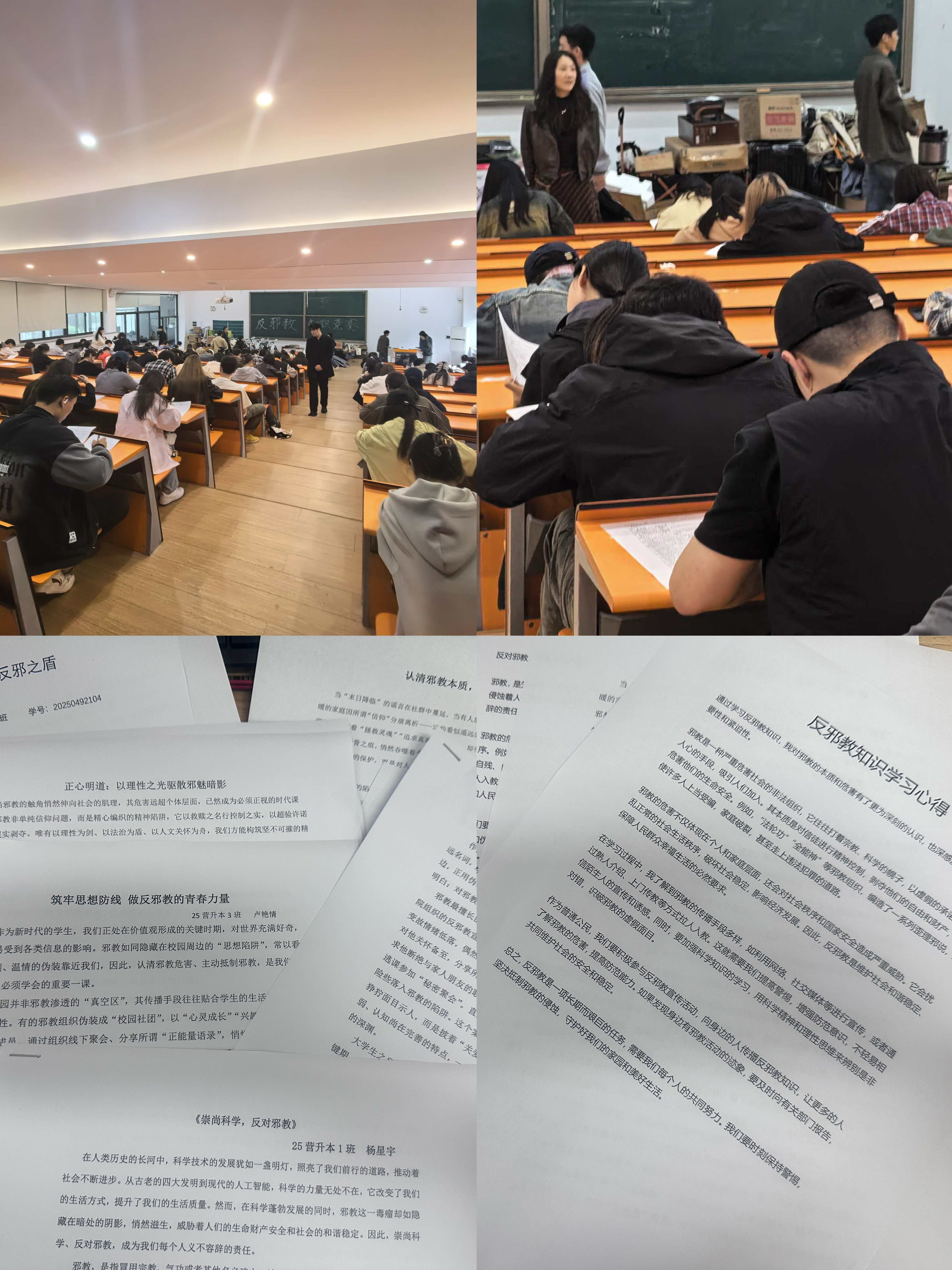 同时,学院组织开展反邪教知识竞赛,既检验新生对反邪教知识的掌握程度,又通过以赛促学的方式,推动知识入脑入心。同步开展反邪教征文活动,鼓励新生结合学习感悟与生活思考,以文字形式表达对邪教危害的认知、对科学精神的崇尚,以及“反对邪教、守护校园”的决心。