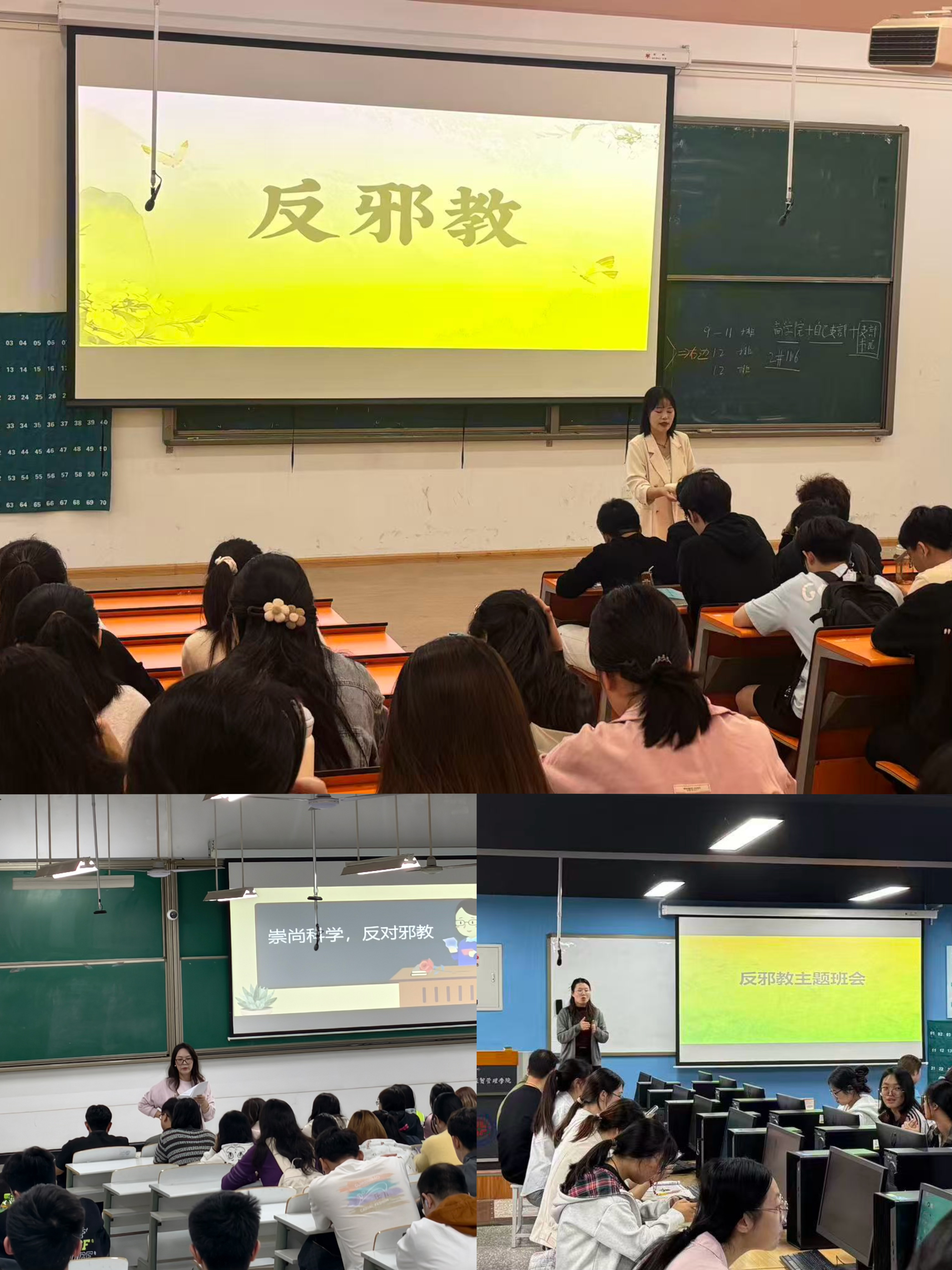系列活动以“识邪、辨邪、防邪、拒邪”为核心目标,通过多形式、多层次的教育载体,实现反邪教知识的全面普及与思想引导的深度渗透。活动初期,学院以班级为单位开展反邪教主题班会,结合反邪教警示教育片展播与专题知识讲座,用真实案例揭露邪教扭曲思想、危害家庭与社会的邪恶本质,让新生在直观感受中认清邪教危害,初步建立防范意识。