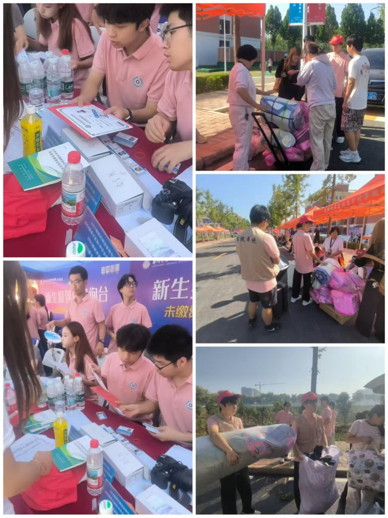9月14日,在登封校区总服务台,志愿者协助新生办理线下入学登记、信息核验等手续,并耐心指引宿舍位置与餐厅路线。迎新现场秩序井然,志愿者们主动帮助新生搬运行李,穿梭于校园之中,展现出热情细致的服务精神。