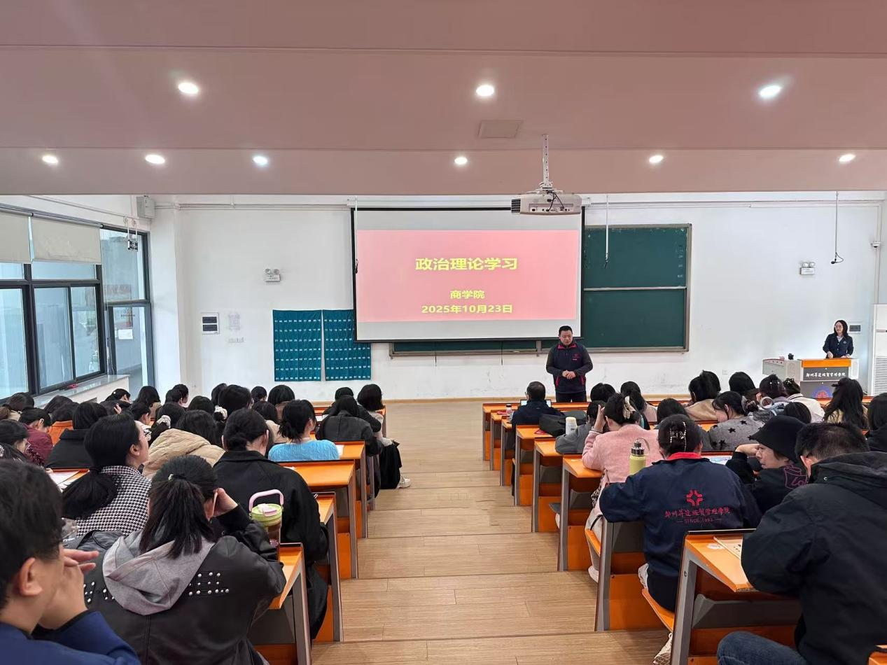 10月23日下午,商学院在2号教学楼116教室组织召开政治学习专题会议。会议由党委书记郭峰主持,全体教职工参会,旨在通过专题学习进一步统一思想认识,将党的创新理论与学院教育教学实践深度融合,为推动学院高质量发展凝聚共识与力量。