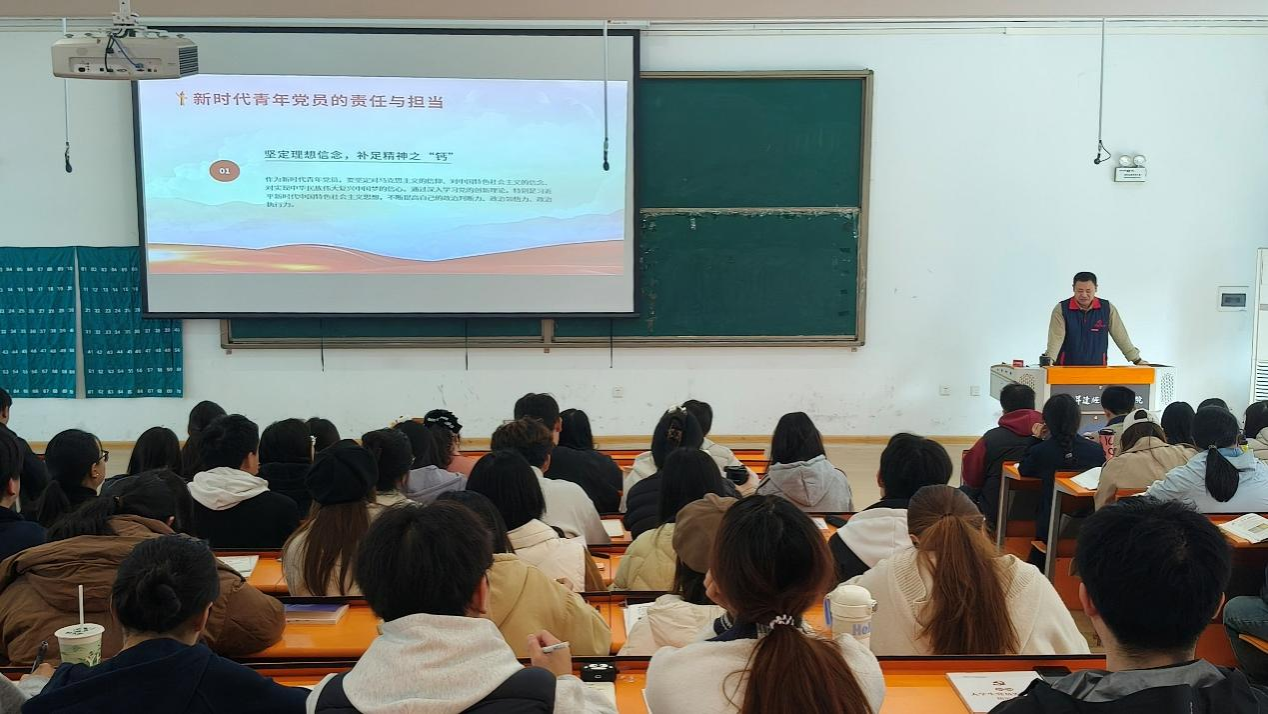 10月28日中午,商学院党委书记郭峰以《筑牢信仰之基,勇担时代使命》为主题在教学楼2号楼116教室为第22期党课学员讲授专题党课。