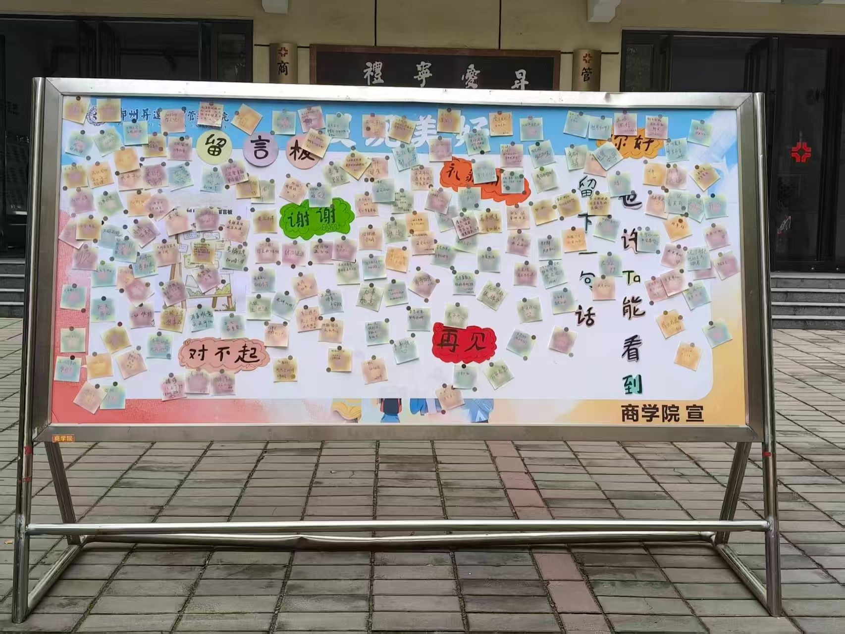 为营造积极健康的校园文化氛围,引导学生关注自我成长与心灵关怀,商学院于2025年10月28日在教学楼2号楼门前成功举办了“写下美好”便签活动。本次活动由商学院团委学生会联络服务部承办,面向全院学生开展。