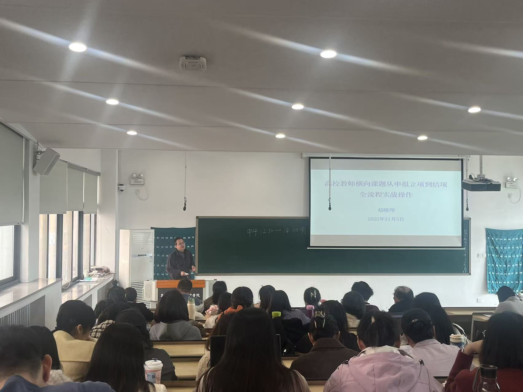为切实提升教师科研实践能力与项目管理水平,进一步推动产学研深度融合,11月5日中午,商学院特邀校本培训师赵晓理副教授,在教学4号楼208教室为全体教师带来了一场主题为“高校教师横向课题从申报立项到结项全流程实战操作”的培训讲座。
