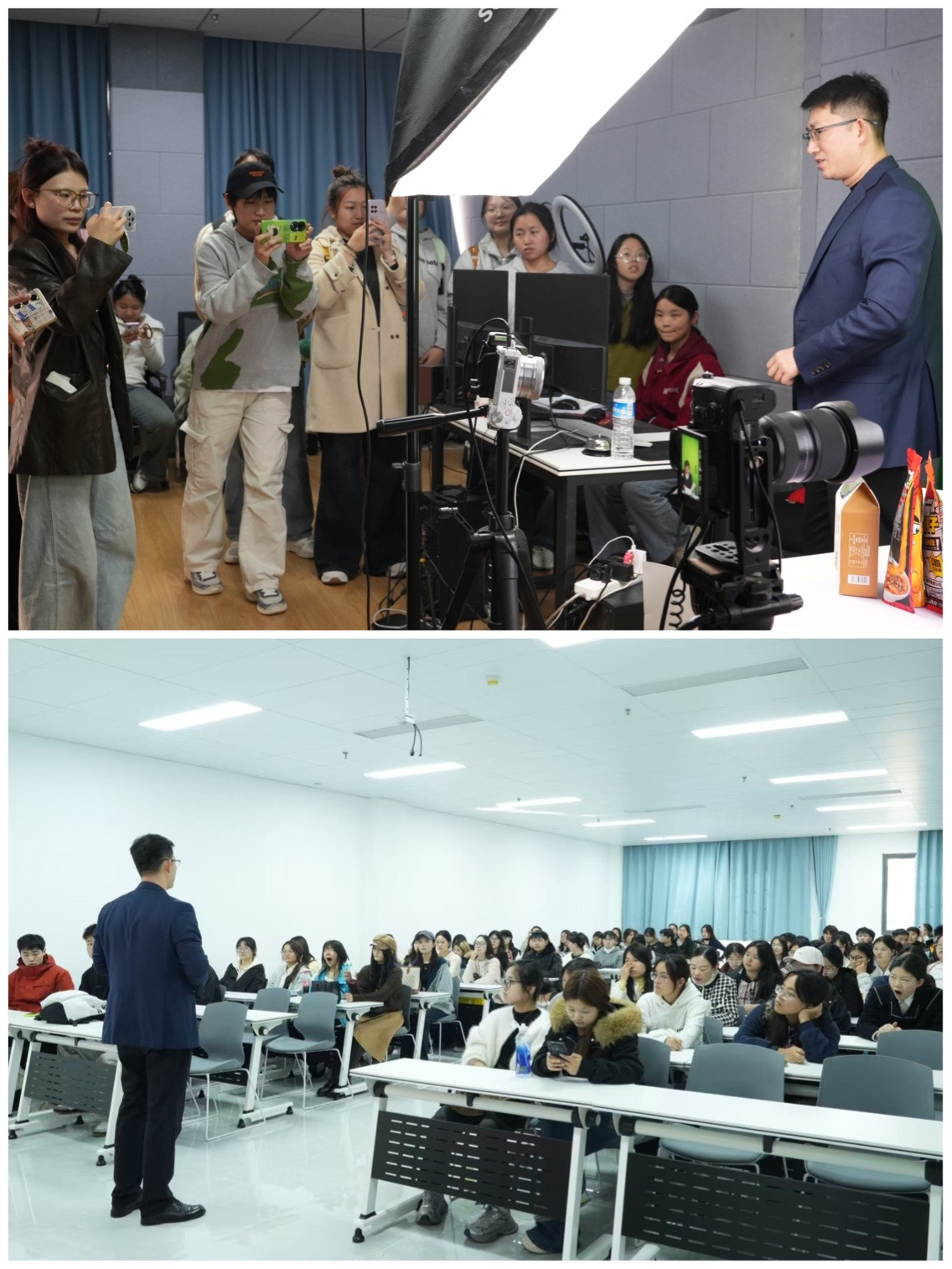 在库课科技王会磊总监的精心安排下,同学们分批有序参观企业的工作环境、直播运营、核心团队和企业发展成就等,同时王洛老师给同学们带来精彩的课程分享,讲述视频剪辑、抖音运营、直播优化等具体实操内容,并耐心解答大家提出的问题。在参观讲解过程中,同学们认真观摩,积极提问,氛围热烈,很多同学还表示希望今后能来企业实习。