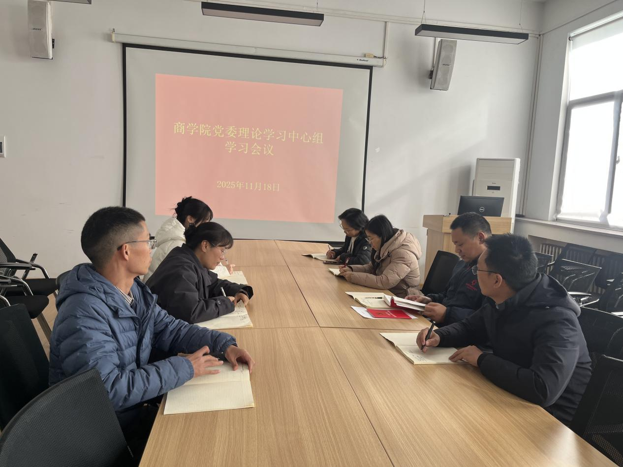 11月18日下午,商学院党委理论学习中心组召开专题学习会,专题研读《中国共产党第二十届中央委员会第四次全体会议公报》。学院全体党委委员参会,会议由学院党委书记郭峰主持。
