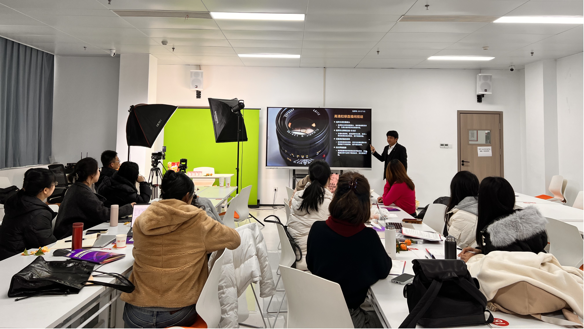 培训伊始,库课科技直播运营负责人结合行业发展趋势,围绕直播账号定位、脚本撰写、话术设计、流量引流、互动技巧及数据分析等核心模块,进行了系统性理论讲解。讲师通过拆解爆款直播案例,深入浅出地剖析了不同品类直播的运营逻辑,重点解读了直播过程中的合规要点与突发情况应对策略,为教师们搭建起清晰的直播电商知识框架。