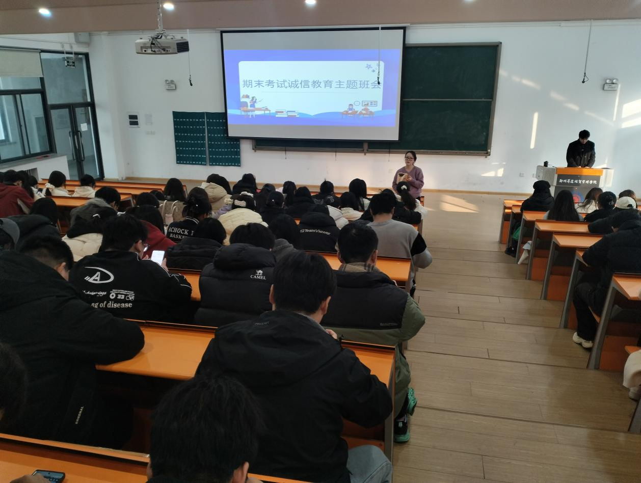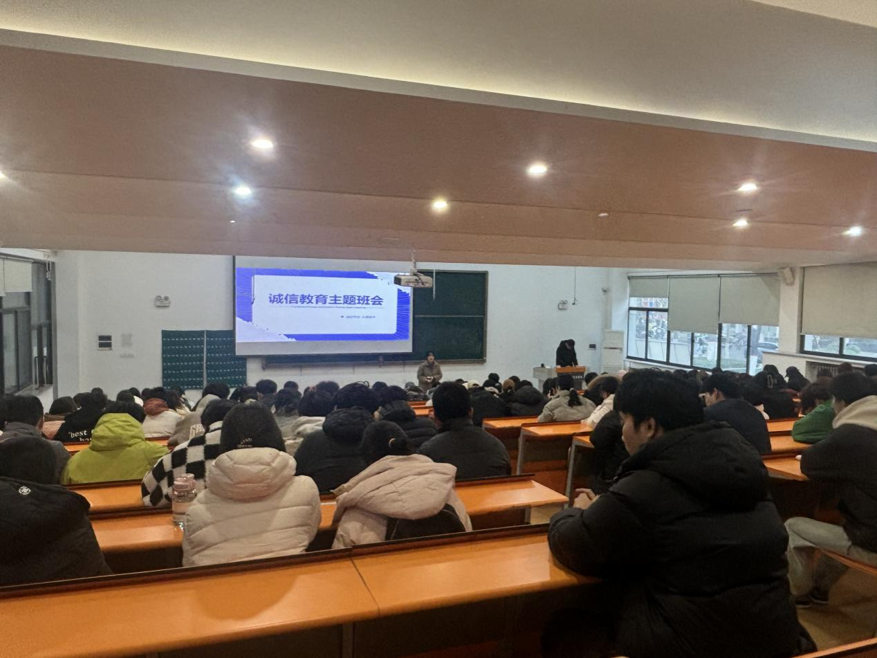 为引导学生树立诚信意识、培育优良学风校风,12月23日,商学院召开考风考纪专题会议,强调以诚信应考为抓手,严明纪律要求,筑牢学风建设防线。会后,各班级陆续开展“以诚信书写答卷,用实力赢得佳绩”主题班会,通过案例剖析、互动讨论、承诺践行等形式,推动诚信教育走深走实。