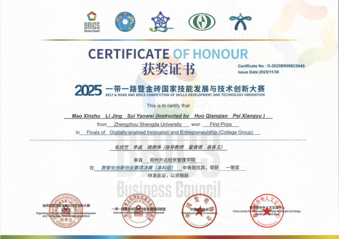 喜报!商学院学子在“2025一带一路暨金砖国家技能发展与技术创新大赛数智化创新创业赛项”中斩获佳绩