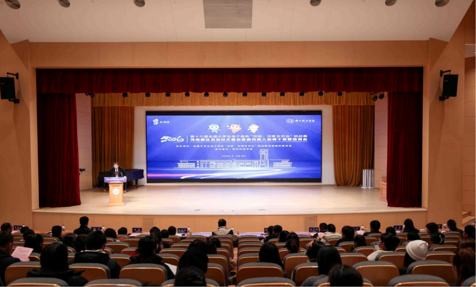 1月9日下午14时,我院电子商务教研室主任叶宝银、专任教师卢瑞娜赴郑州科技学院艺术北楼音乐厅,参加第十六届全国大学生电子商务“创新、创意及创业”挑战赛(以下简称“三创赛”)河南赛区启动仪式暨校级赛负责人和骨干教师培训会。会议汇聚了来自河南省多所高校的校级赛负责人和骨干教师。我院教师参加本次会议旨在进一步提升对“三创赛”赛事规则与动向的理解深度,系统掌握项目指导方法与赛程组织要求,加强与省内院校及企业资源的交流协作。