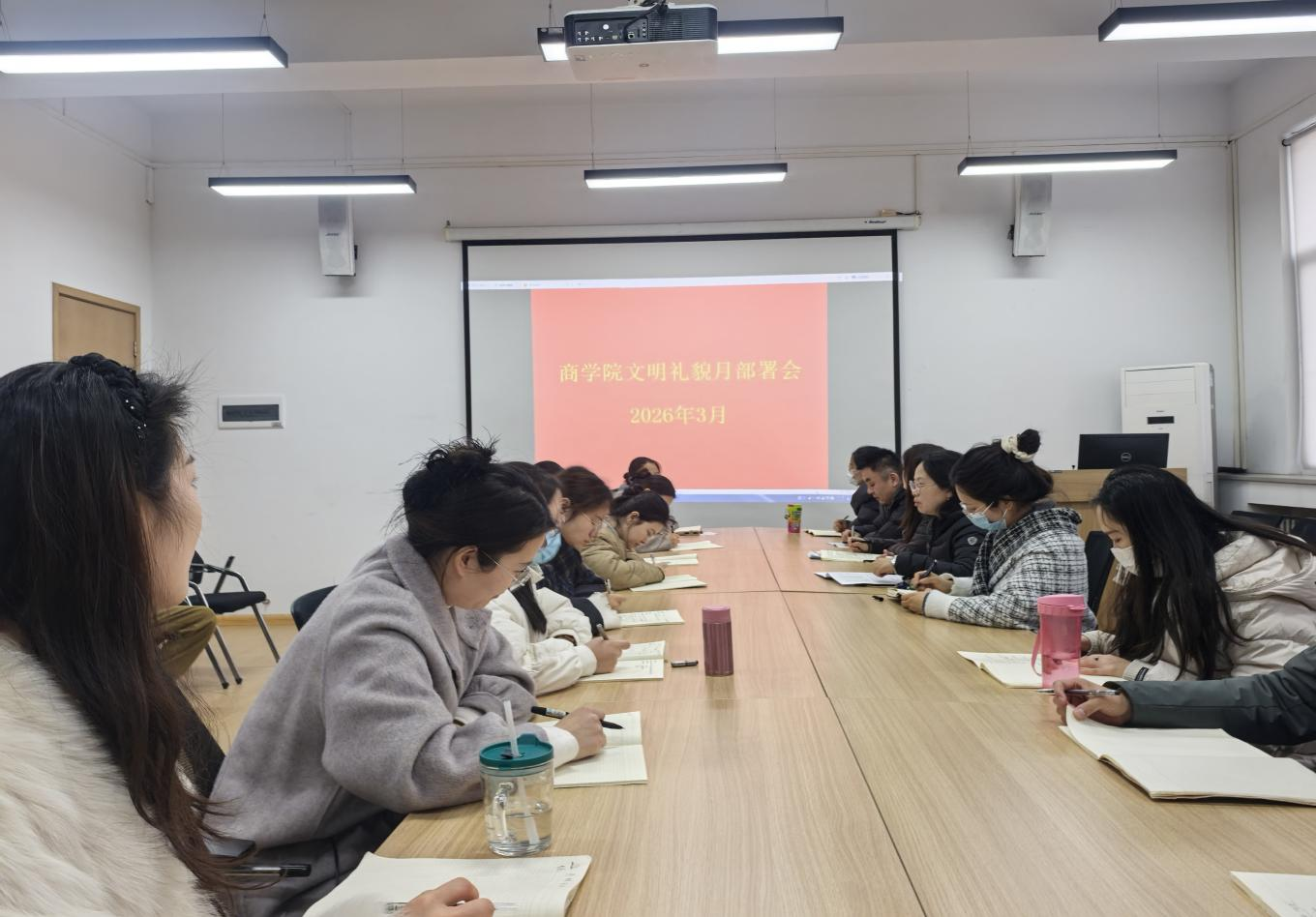 为深入推进校园文明建设,引导学生涵养文明素养、塑造良好行为风尚,3月17日下午,商学院在2号教学楼315会议室召开文明礼貌月活动部署会。学院党委副书记郗艳花及全体辅导员参加会议。