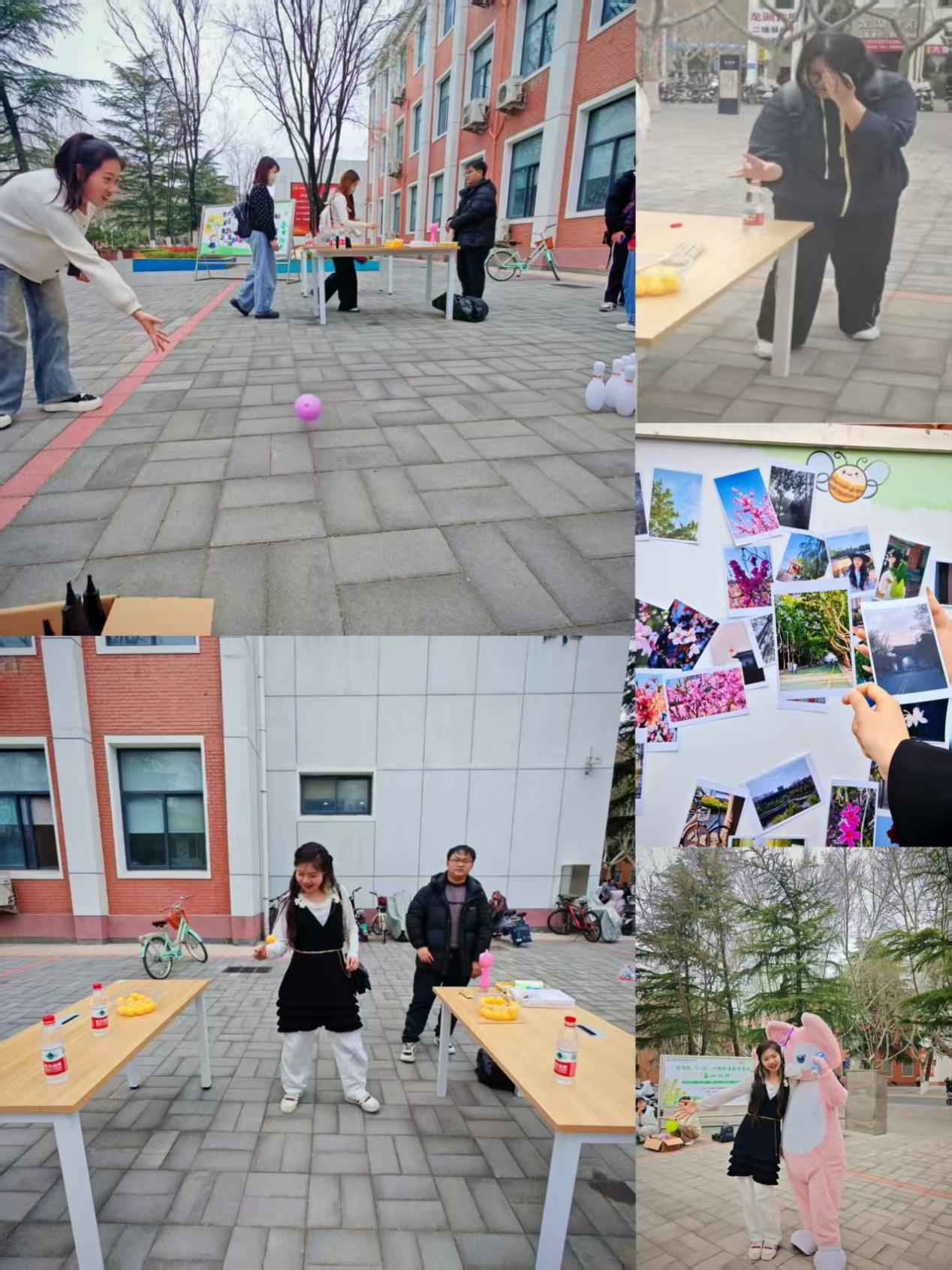 活动围绕“释放压力、增进互动、感受春光”三大目标,设置了拥抱互动、趣味游戏、摄影展览等多个环节,吸引了众多师生积极参与,现场气氛温馨而热烈。“抱一抱”传心意中,身穿玩偶服的“拥抱使者”与同学们温暖相拥,赠送糖果传递春日美好;“眩晕一击”考验参与者的平衡与专注,旋转三圈后弹掉瓶盖的挑战引得阵阵欢笑;“轻‘筷’传运”则通过接力传递乒乓球,展现了团队协作的默契;“心随球动”以保龄球形式激发竞技热情,参与者在投掷中释放活力;“春日拾光”摄影展区陈列着同学们镜头下的校园春景与笑脸,成为广场上一道亮丽的风景线,最终评选出特等奖1人,一等奖2人,二等奖3人,三等奖6人。