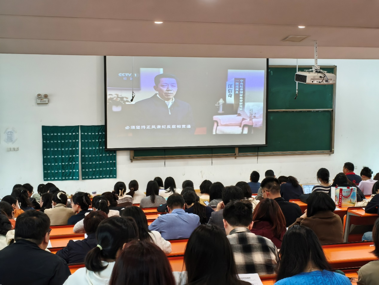 会上,全院教职工集中观看了警示教育专题片《一步不停歇半步不退让》第一集。片中鲜活的反面案例发人深省、令人警醒,全体教职工深受教育和触动,切实强化了纪律意识、规矩意识和廉洁自律意识。
