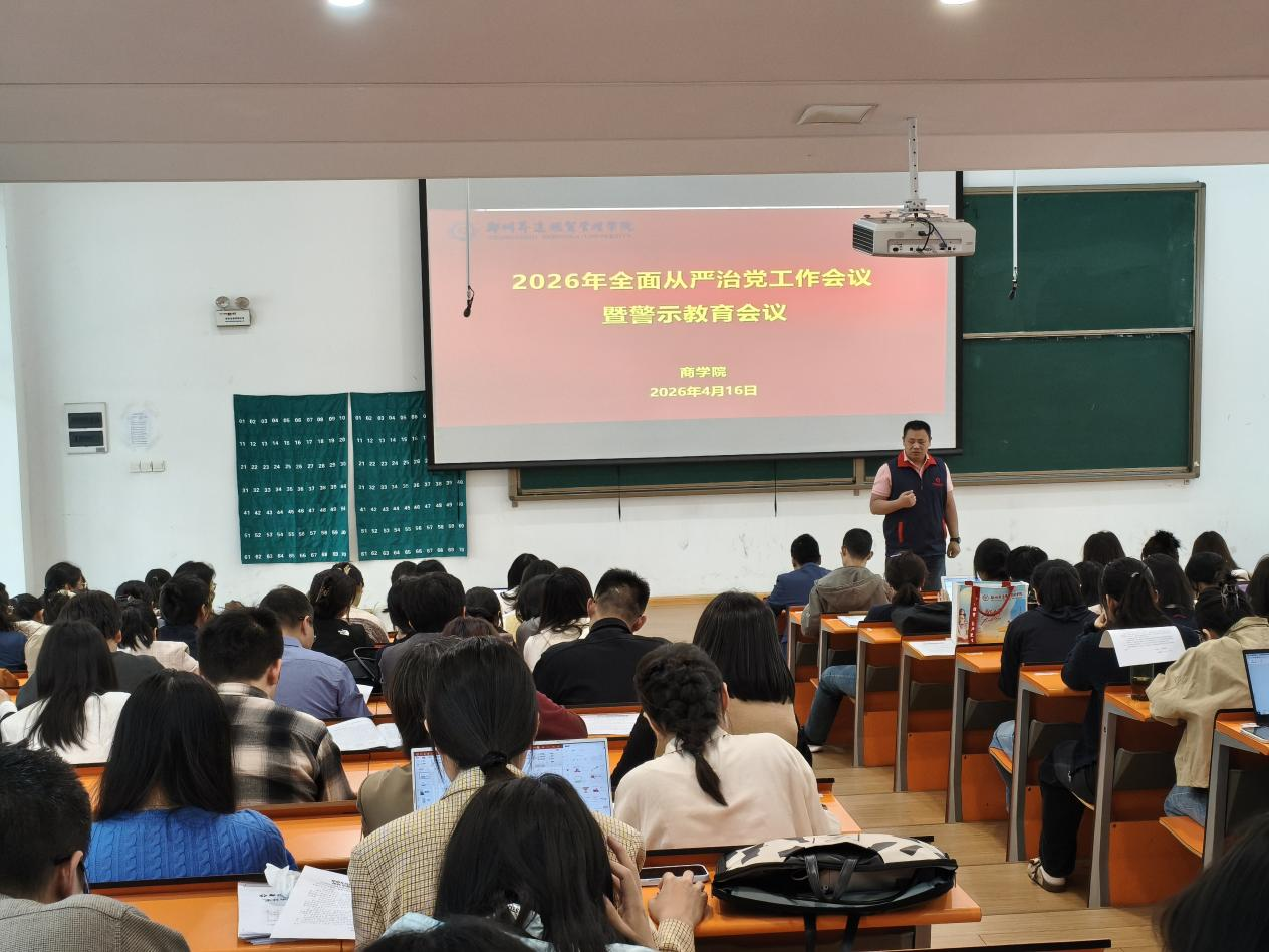 4月16日,商学院在教学楼2号楼116教室召开2026年全面从严治党工作会议暨警示教育会议,会议由学院党委书记郭峰主持,全院教职工参会。
