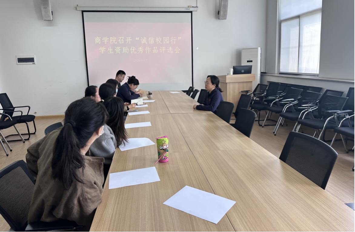 为深入贯彻落实学校2026年“诚信校园行”学生资助宣传教育活动部署,大力弘扬诚实守信美德,全面宣传国家资助政策,4月23日,商学院在教学2号楼315会议室顺利召开“诚信校园行”短视频作品评选会。商学院党委副书记郗艳花及辅导员评审代表共同参与本次评选工作,对前期征集的作品进行集中评审。