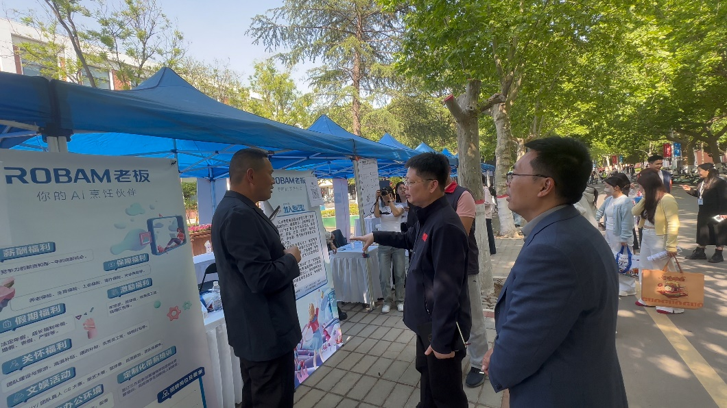 双选会现场秩序井然、氛围热烈。张其武副校长深入各企业展位,与用人单位代表亲切交谈,详细询问用人需求、招聘标准及行业发展趋势,感谢企业长期以来对学校及商学院人才培养、就业工作的支持,希望校企进一步深化产教融合、拓宽合作领域,实现协同育人、互利共赢。同时,他与毕业生亲切交流,询问求职意向与面试进展,勉励毕业生树立正确就业观、择业观,找准定位、主动展示,珍惜机遇、理性规划职业发展。