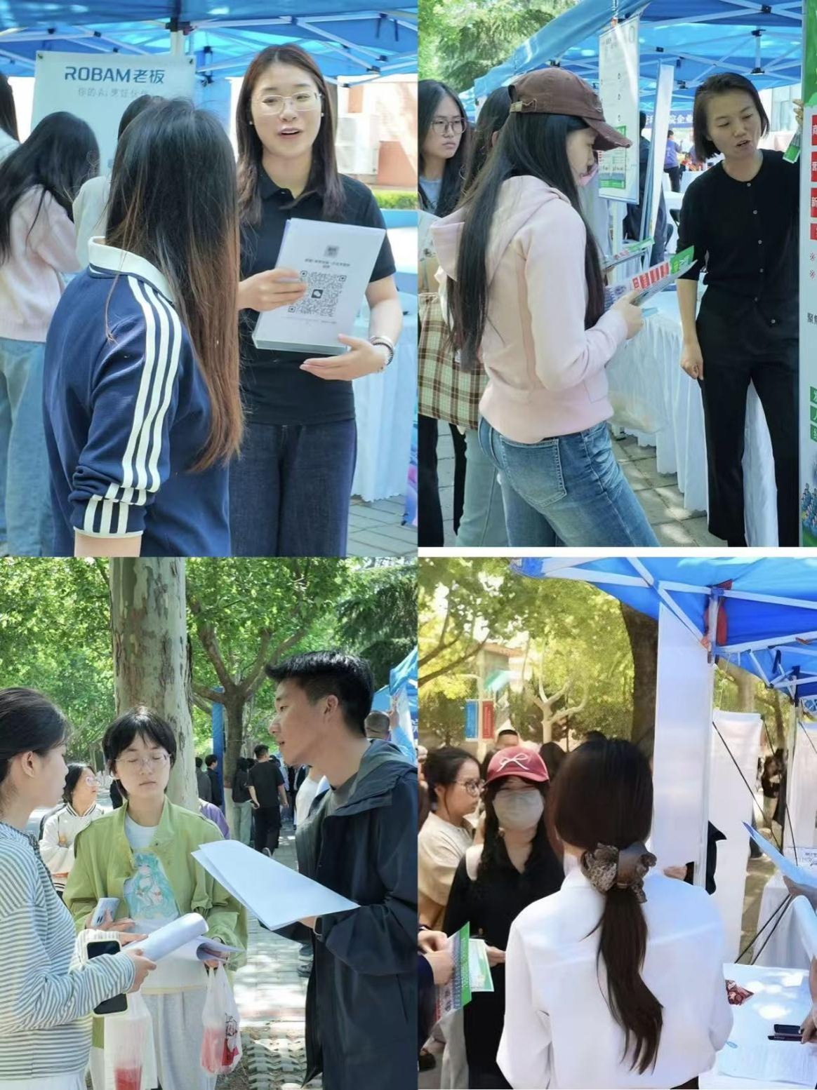冯科处长结合当前就业形势,向企业介绍学校毕业生整体情况及就业工作举措,就校企合作、人才培养适配等方面深入探讨,为后续搭建稳定合作平台、拓宽就业渠道奠定基础。商学院领导班子走访各展位,了解企业与毕业生需求,协调解决现场问题;毕业班辅导员全程在岗,为毕业生提供简历修改、面试指导、政策解读等服务,助力毕业生高效对接岗位。