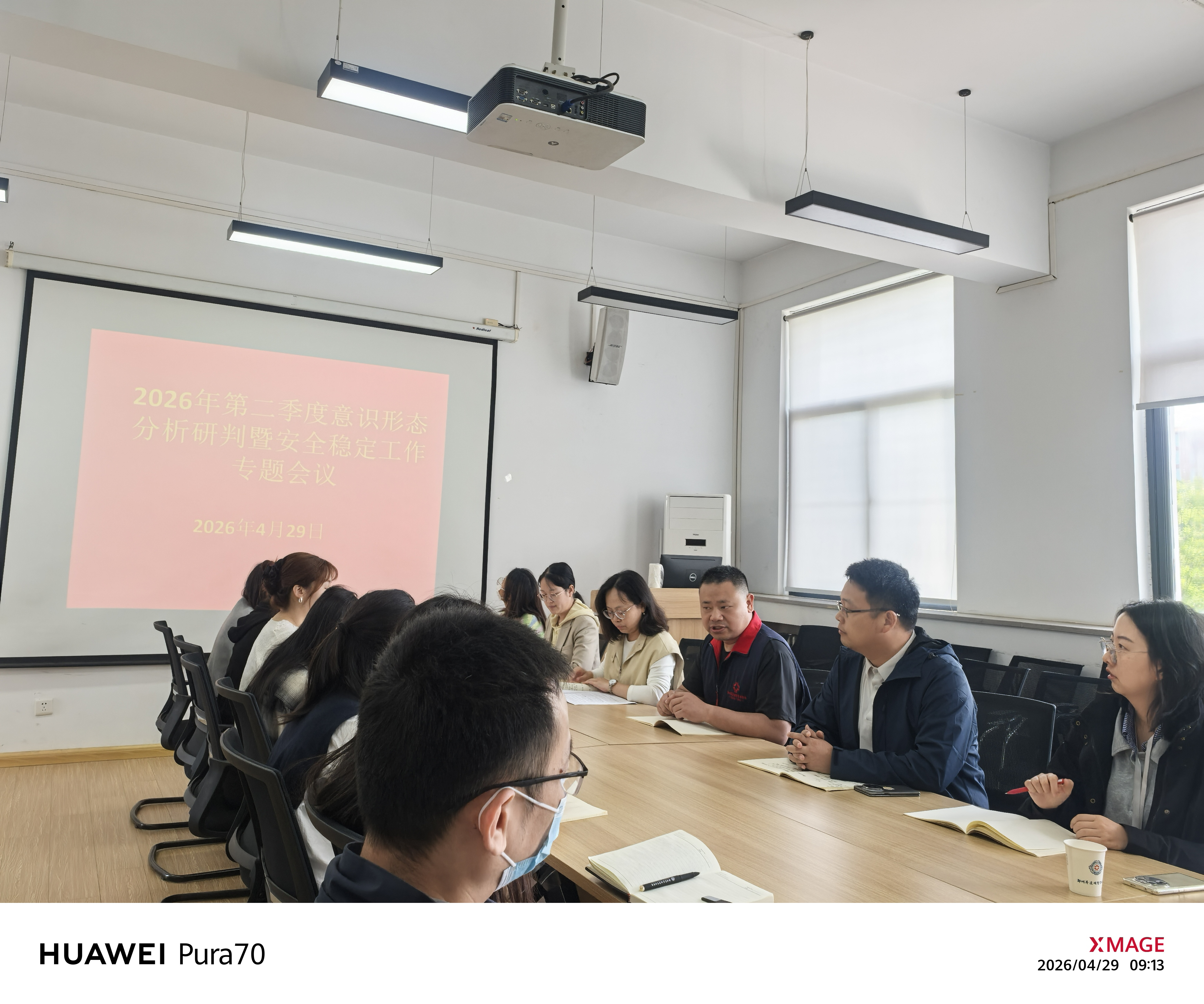 2026年4月29日,商学院召开2026年第二季度意识形态分析研判暨安全稳定工作会议。会议由商学院党委书记郭峰主持,学务处宿管科张弛科长,党委副书记郗艳花及全体辅导员参会。
