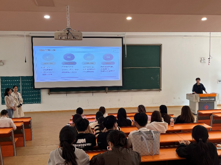 侯亚茹老师从就业环境出发,分析了考研的必要性与可行性,建议学生尽早明确目标、科学规划复习。张敏老师围绕专业课与公共课备考、院校选择及调剂策略进行补充,强调真题训练与小组互助的重要性。