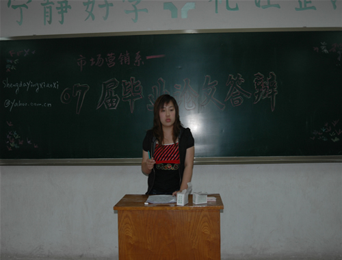 5月31日,市场营销系2007届优秀毕业论文答辩工作在教学四号楼顺利进行。参加本次07届优秀毕业论文答辩的毕业生共计45人,涵盖市场营销专业、物流管理专业、电子商务专业和广告学专业,答辩分为4个小组。本次答辩,共有32名学生获得优秀成绩。