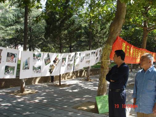 经过认真的准备,9月19日,第一批照片在我系军训场地(北朴实路北食堂段)展出,在这次题为“掠影”的展出中,同学们用手中的相机,捕捉了老师和同学在写生过程中的每一个精彩瞬间,有写生忘我入境的专注、有气氛热烈的集体就餐、有精彩纷呈的联欢晚会,凡此等等,不一而足。这些精彩的照片,吸引了军训新生和过路同学的目光,博取他们的丝丝羡慕和连绵赞美。