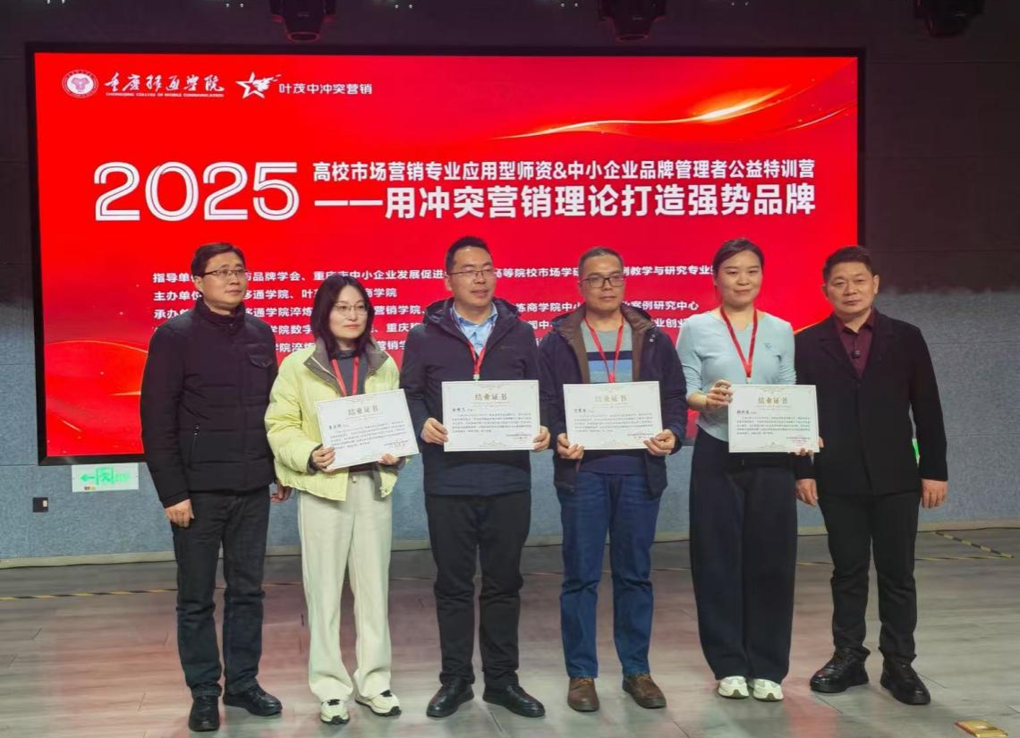 2025年12月25日-28日,商学院院长白朋飞,带领广告专业教研室主任张冰晶,教师宁震霖、李亦骐赴渝参加重庆移通学院淬炼商学院举办的公益特训营。本次特训营主题为“用冲突营销理论打造强势品牌”,主讲嘉宾为国内...[详细]