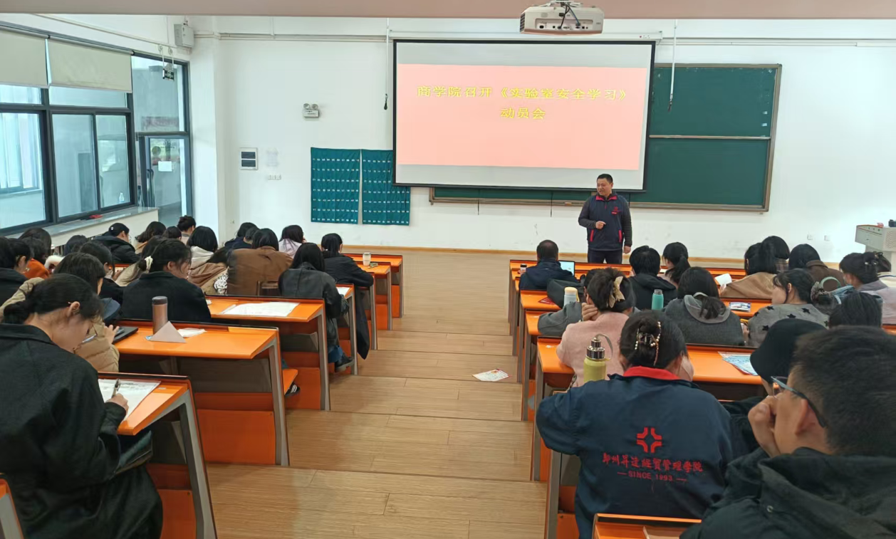 为响应学校实验室安全工作要求,切实做好实验室安全教育培训与考试的落地实施,强化师生实验室安全意识与操作规范,2025年10月9日下午,商学院在教学楼2号楼116室组织召开实验室安全教育培训与考试工作部署启动会...[详细]