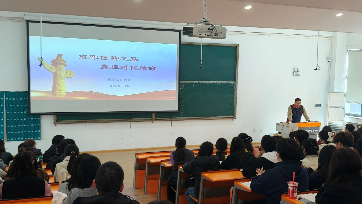 10月28日中午,商学院党委书记郭峰以《筑牢信仰之基,勇担时代使命》为主题在教学楼2号楼116教室为第22期党课学员讲授专题党课。授课中,郭峰书记以生动鲜活的历史叙事为“主线”,清晰勾勒出党领导人民在不同...[详细]